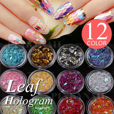 【急速出荷】大容量 12色セット リーフ ホログラム プリズムカラーリーフ ケース入り ジェルネイル ネイルアート ネイル デコ パーツ ネイルストーン ジェル ネイル アート アクセサリー