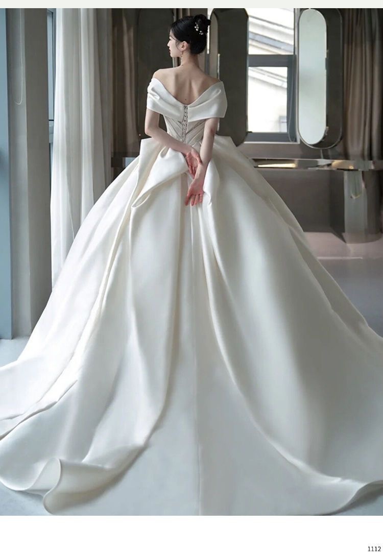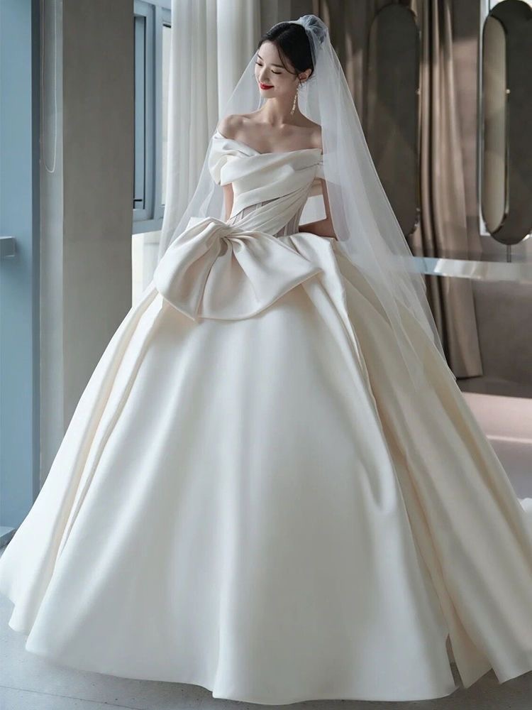 ワンショルダーサテンウェディングドレス花嫁2025小さいプラスサイズ妊婦ハイエンドフォレストスタイル