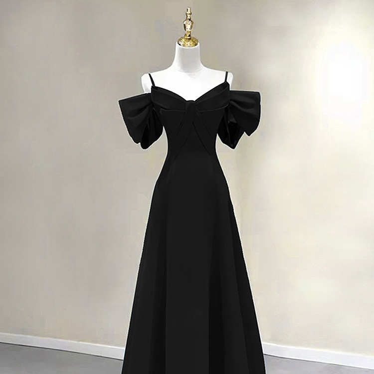 女性のための黒のイブニングドレス 2025 ハイエンド音楽卒業美術試験サスペンダードレス