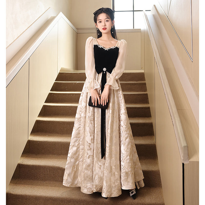 長袖イブニングドレスフェミニンスタイル宴会ハイエンド気質芸術テストドレス
