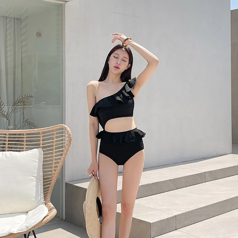 と韓国の女性用ワンショルダーカラー水着ウエスト漏れセクシー痩身温泉リゾート水着