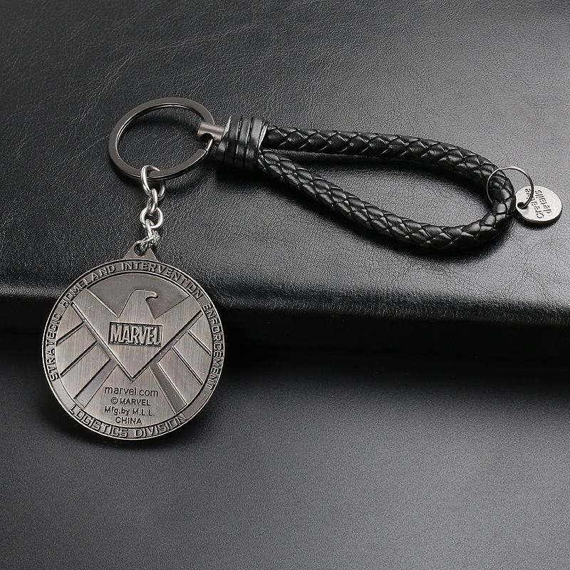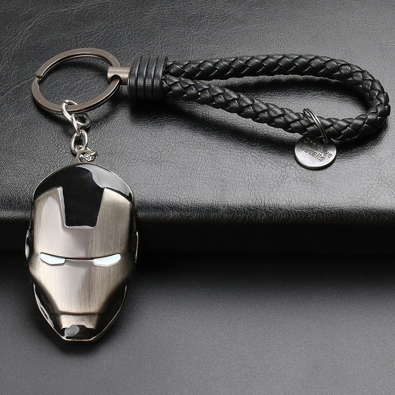 漫威キーホルダー美隊黒盾アイアンマンマスクタングステン鋼革紐キーホルダー金属ペンダントプレゼント