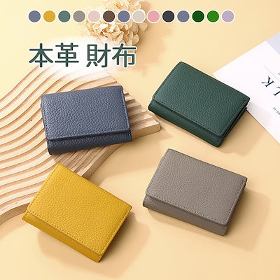 本革 ミニ財布 レディース 2つ折り財布 カード入れ 小銭入れ コインスルー コンパクト スキミング防止 ゴールドファスナー