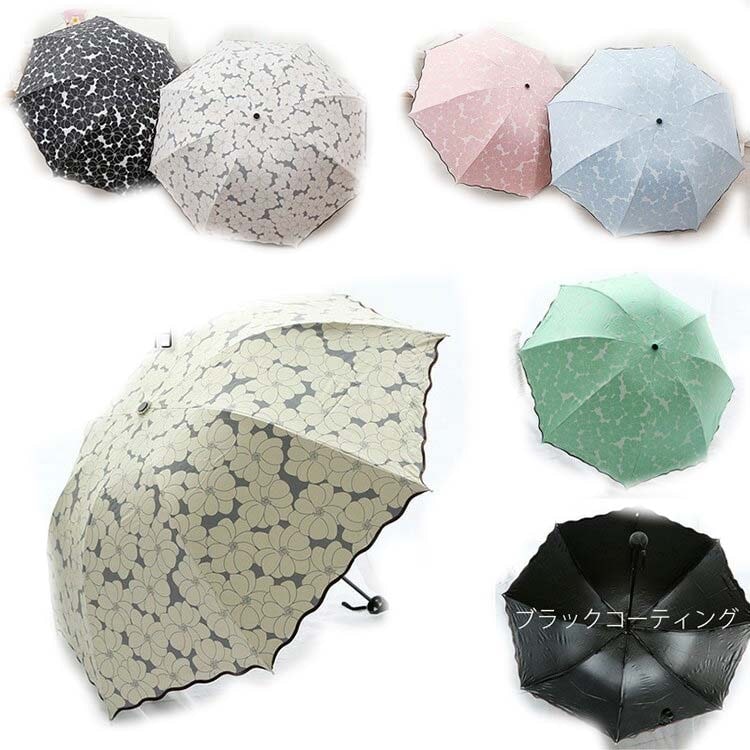 準備したいレイングッズ 晴雨兼用 レディース 姫系 UVカット 日傘 折りたたみ 深張り 花柄 フリル 遮光遮熱 大人かわいい ブラックコーティング 裏張り フラワー傘 シミ シワ紫外線対策