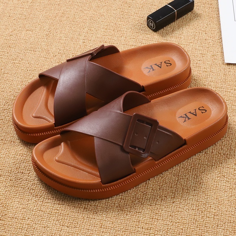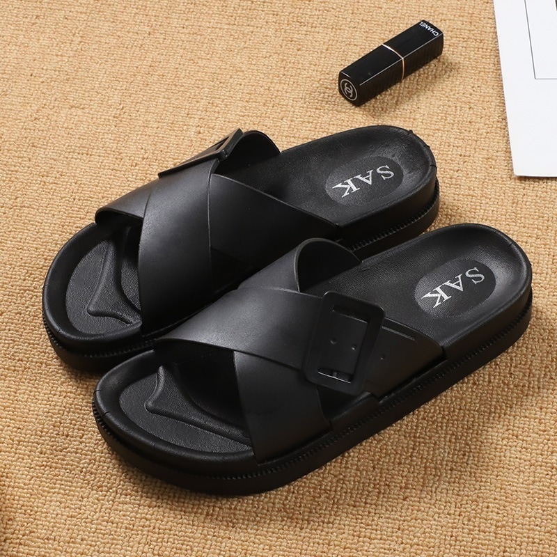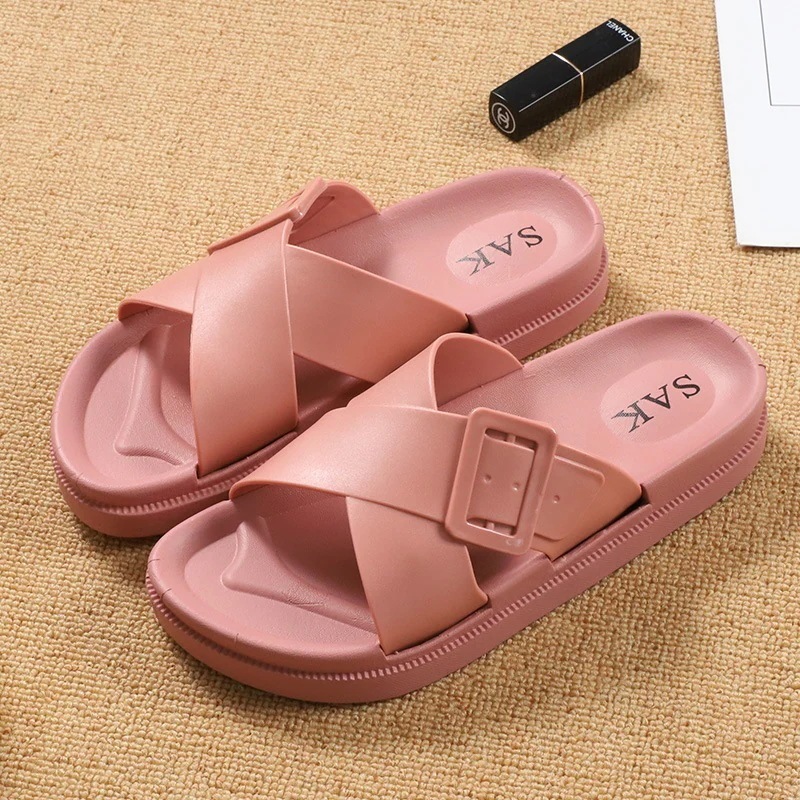 スリッパ女外履きクロスクール厚底カジュアル踏み糞感ソフト底ビーチスリッパ