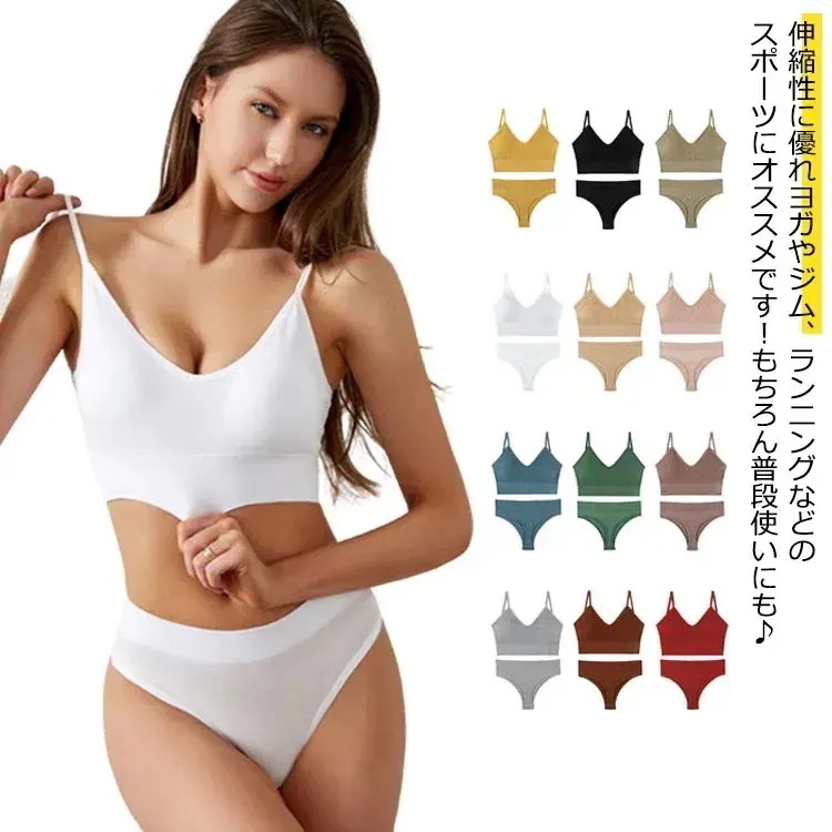 ブラ ショーツ セット スポーツブラ Tバック アンダーウェア 下着 ノンワイヤーブラ 水着インナー ヨガ シンプル レディース ブラジャー パンツ おしゃれ ジム スポブラ 筋トレ 運動