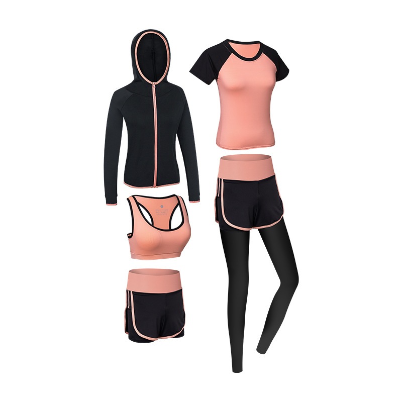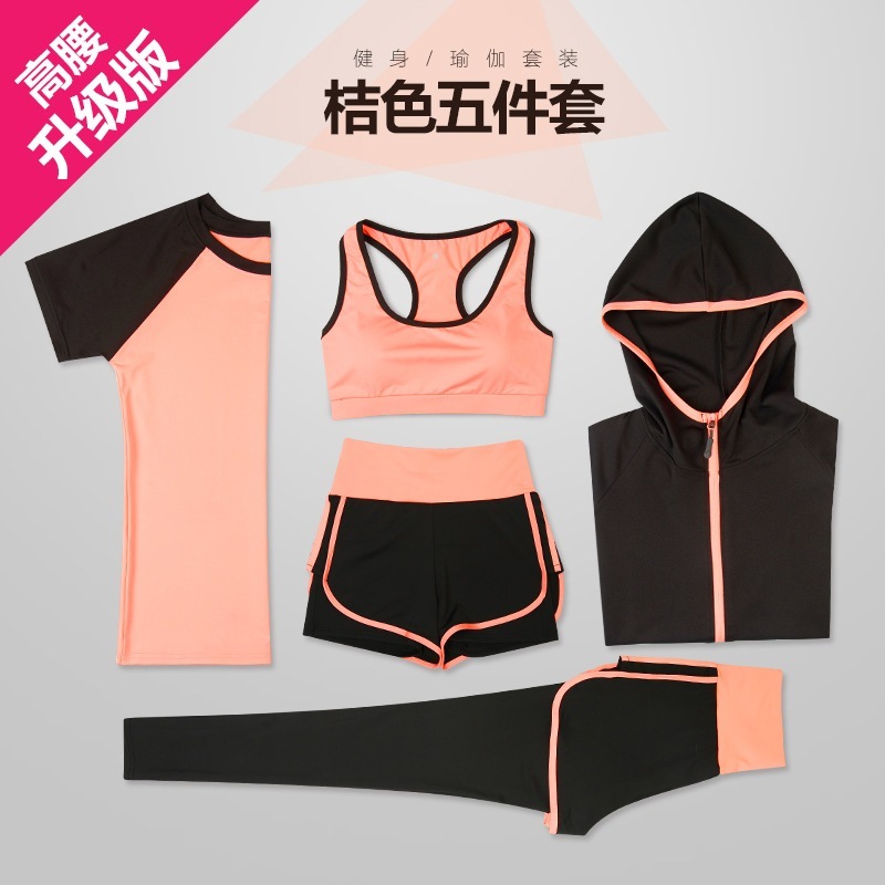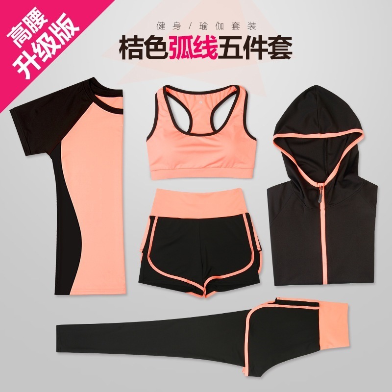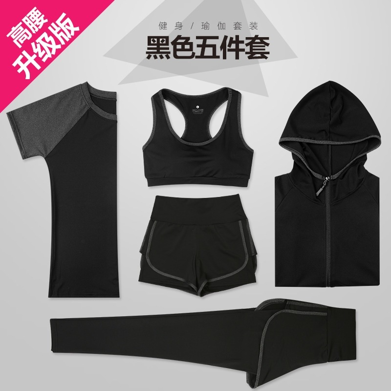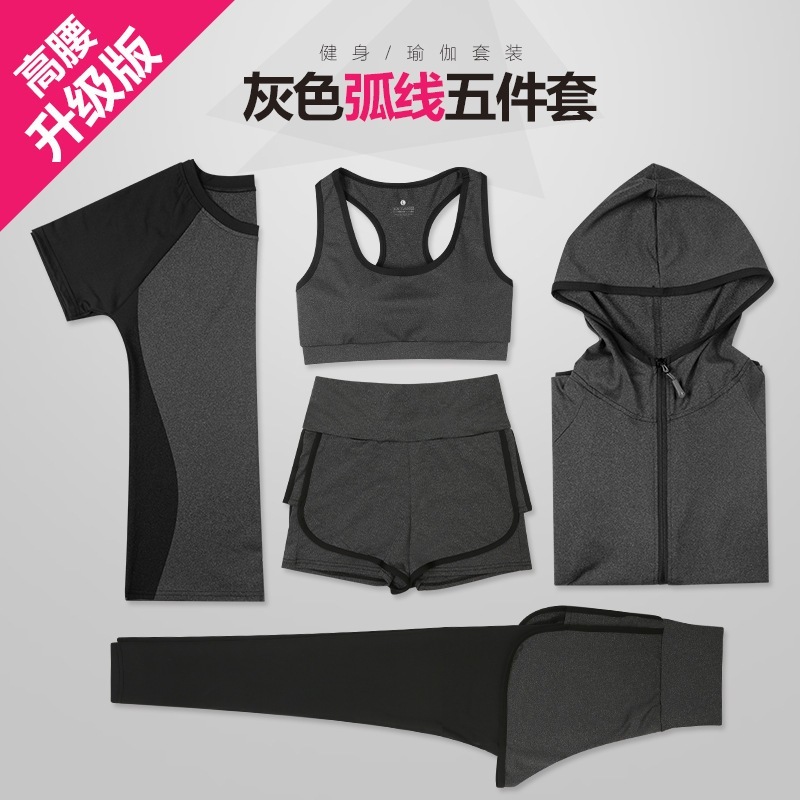 新しいスタイルのヨガウェアレディーススーツ夏速乾性5ピーススポーツウェアスリムスポーツスーツレディー