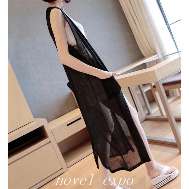 ベスト レディース サマー ニット ロング丈 ノースリーブ ロングベスト 前開 アウター 春 カジュアル 夏