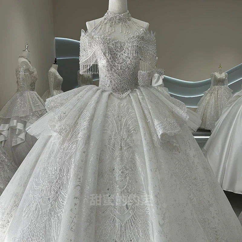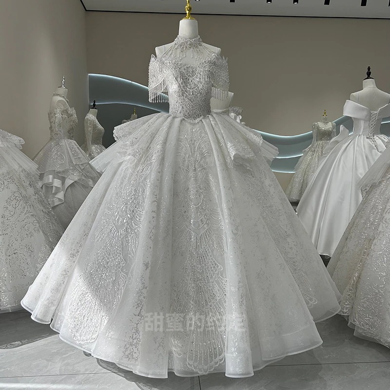 ワンショルダー ウェディングドレス ブライダル 2025 主糸 重工業 マタニティ 大きいサイズ プリンセスドレス