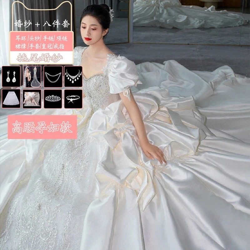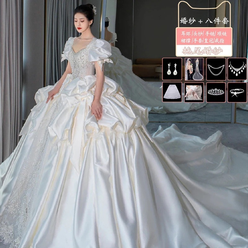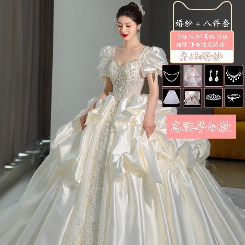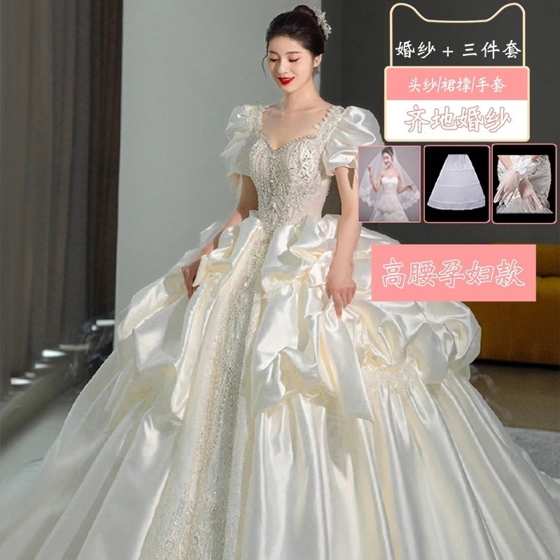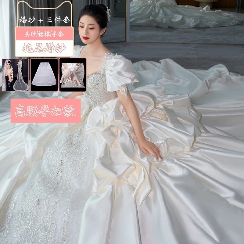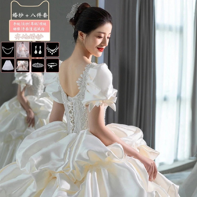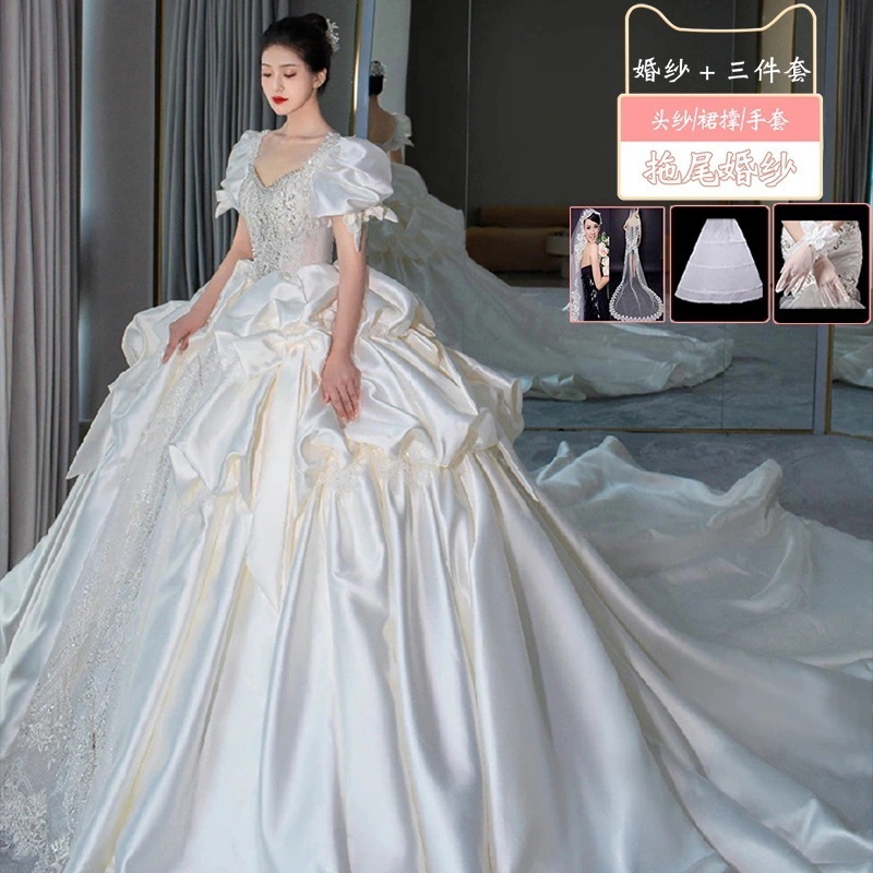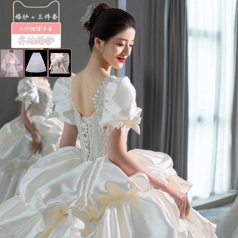 サテンライトウェディングドレス花嫁2025本糸ドレス重工業小さい大きいサイズ 太りmm