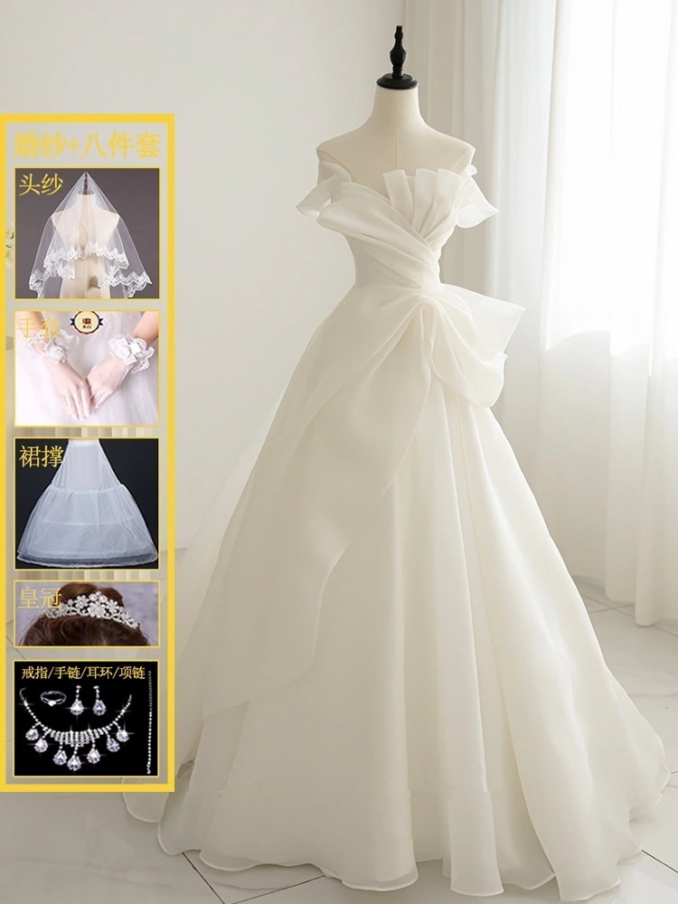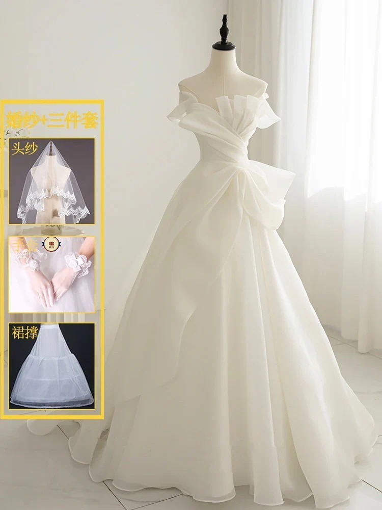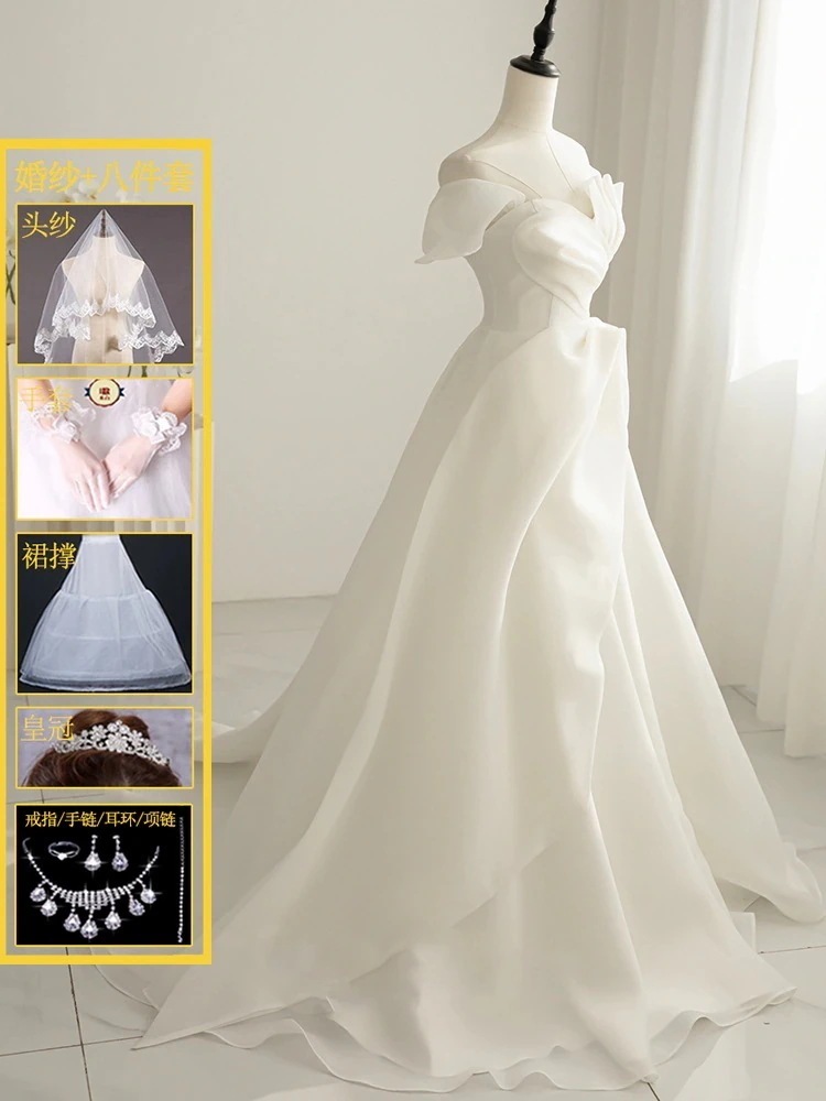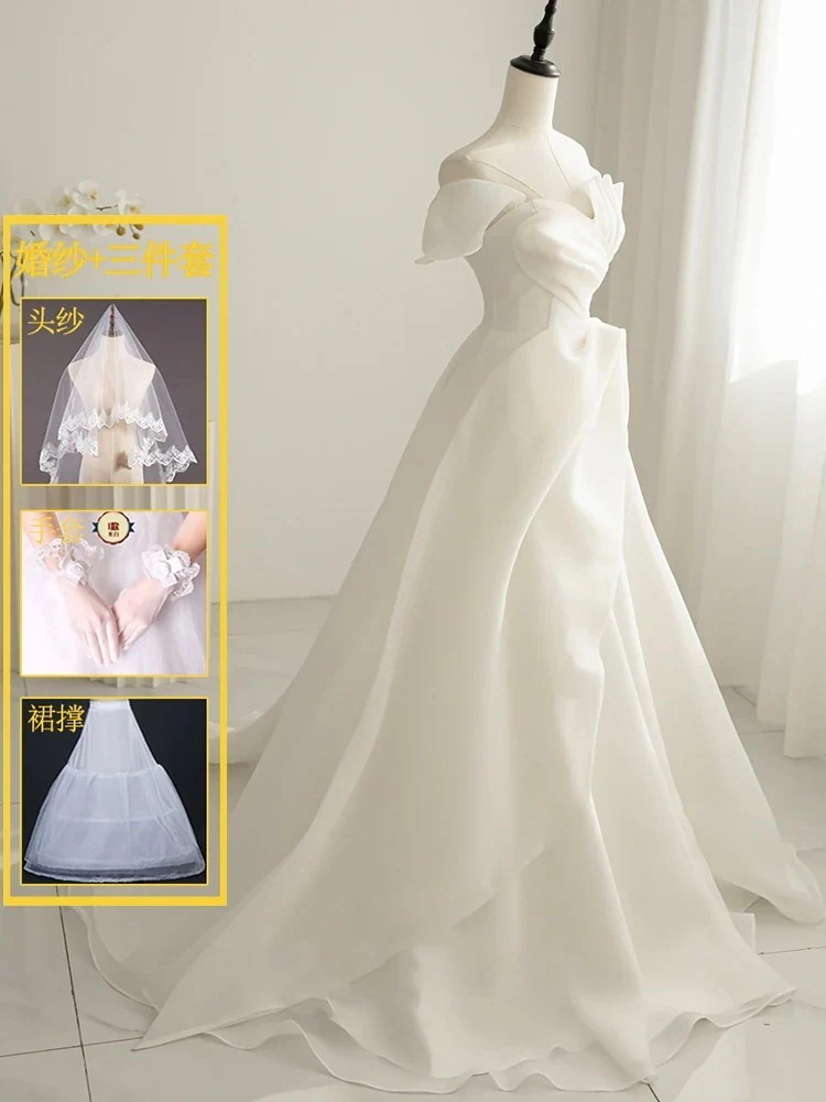 ストラップレスライトウェディングドレス2025花嫁プチお出かけ糸シンプルスモールテールウェルカム糸