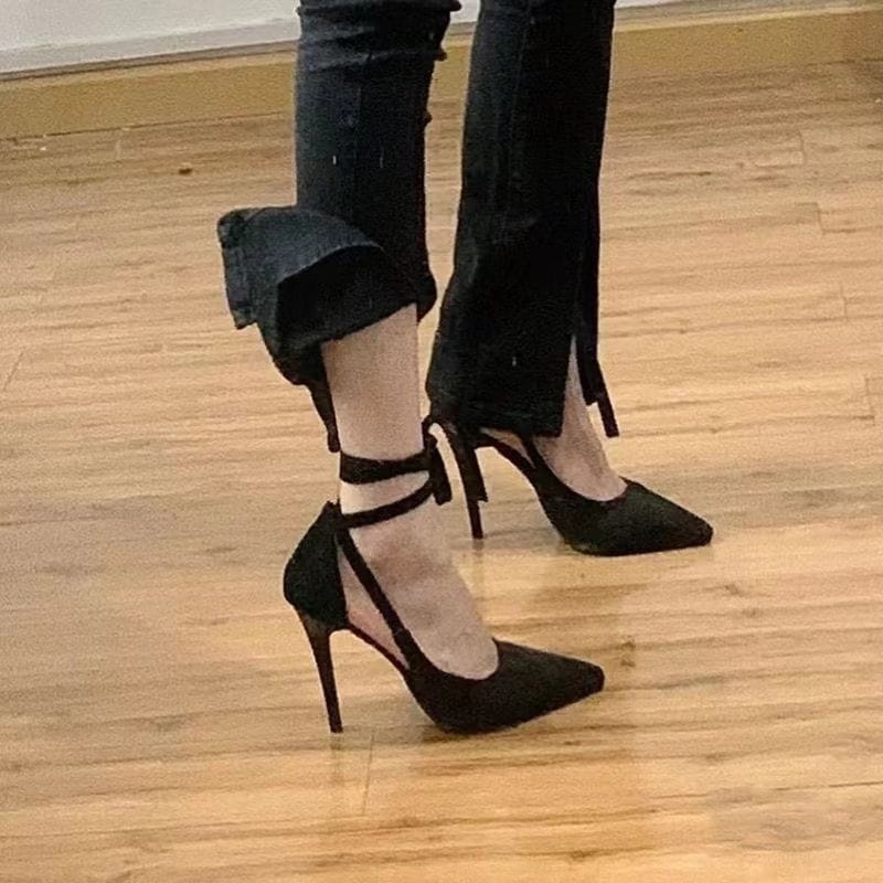 【2枚購入で 3oo円OFF!】2025春秋ストラップブラックスティレットフェミニンセクシーな大人のドレスシューズ