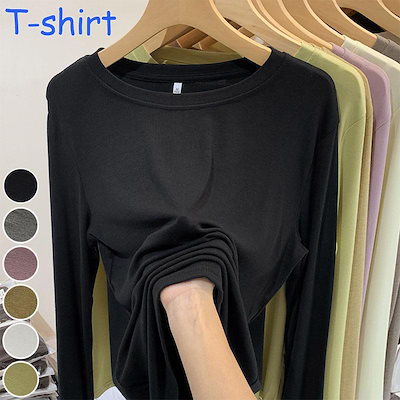 品質いいな新品 tシャツ Tシャツ レディース 長袖 丸首 トップス 春 秋 無地 普段着 通学 通勤 カジュアル きれいめ ミドル丈 着心地 敬老の日 20代 30代 40代 50代 60