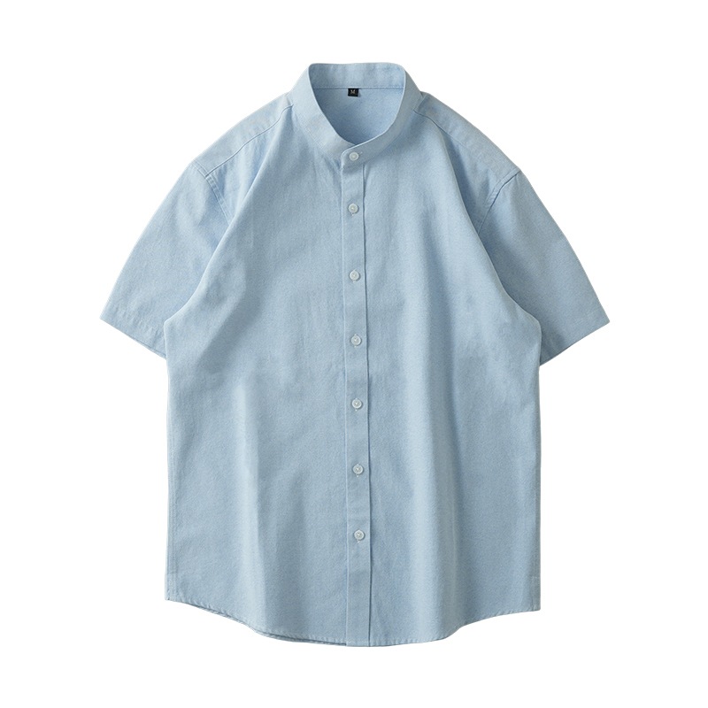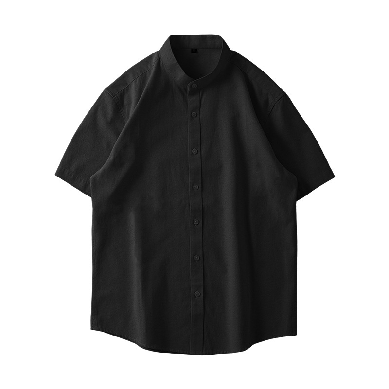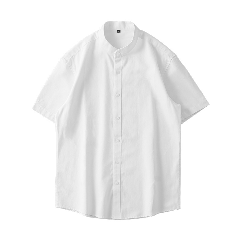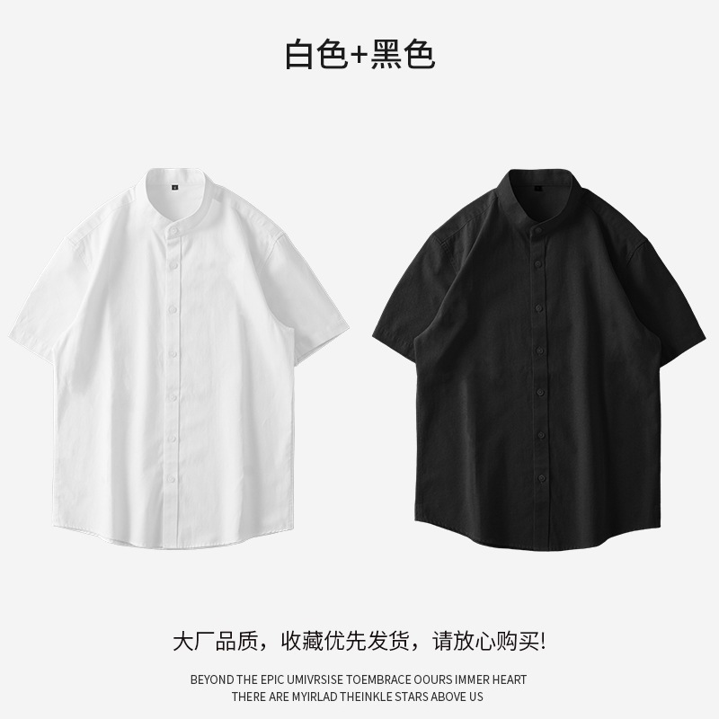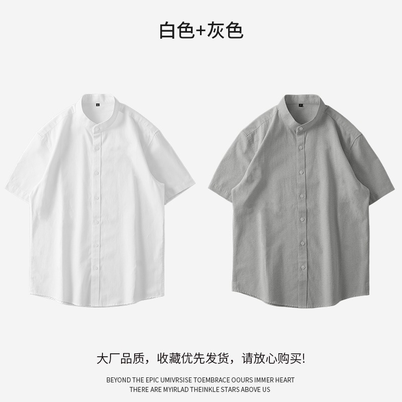 新中国風スタンドカラーシャツメンズ半袖ハイエンド2024年日本製厚手オックスフォードテキスタイル白シャツ夏