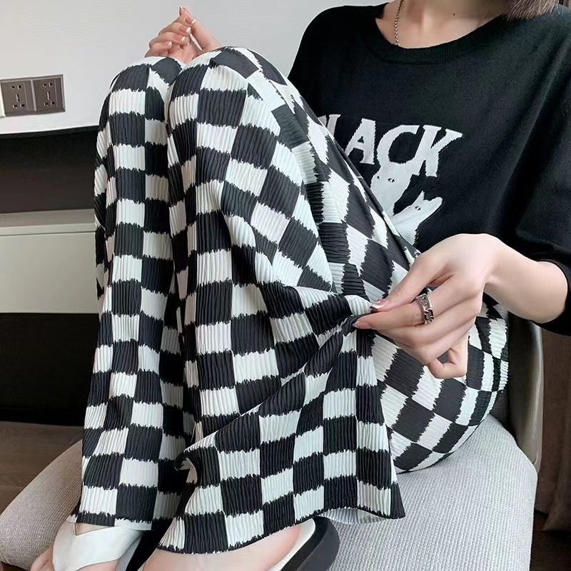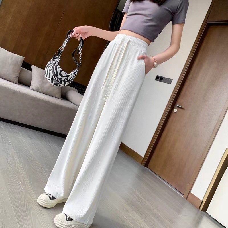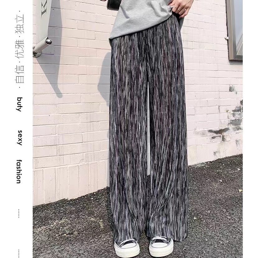 選べる2つの長さ !アイスシルク タイダイワイドレッグパンツ女春夏の薄手 ワイドパンツ ストレートスリムハイウエストのドレープカジュアルパンツ