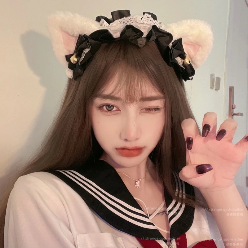 贩売促进 猫のカチューシャの髪飾りのぬいぐるみ猫の耳の髪飾りの蝶結びの青いピンクの黒いリボンの鈴のかわいいカチ コスプレ