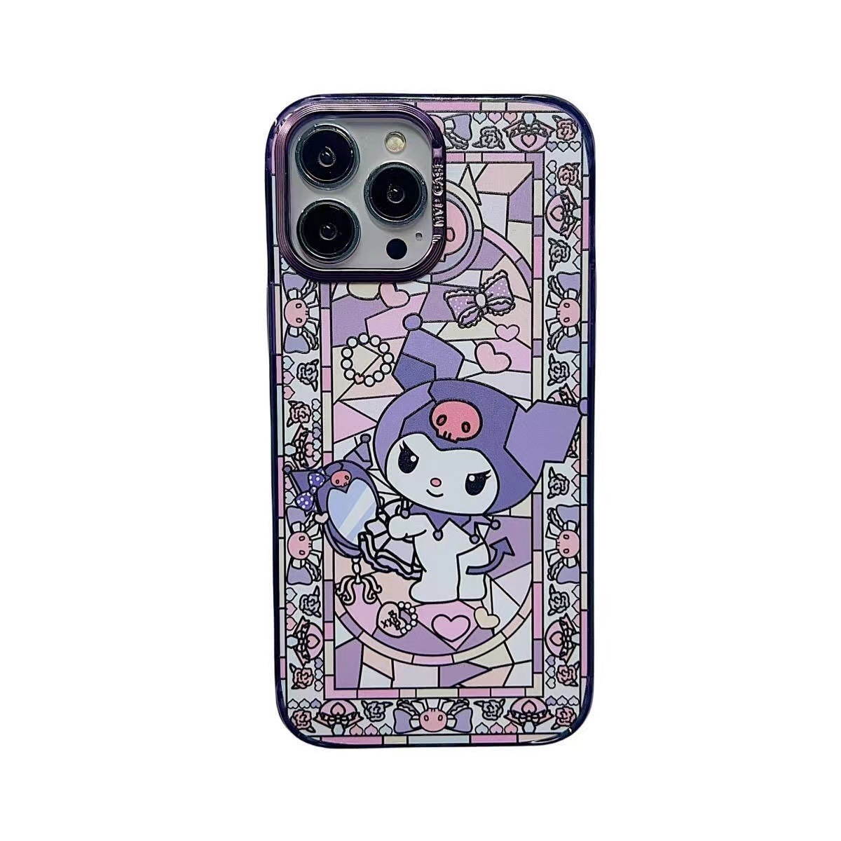 [ホットリスト1]かわいいガラスパターン漫画 iPhone14pro 携帯電話ケース Apple 保護カバー電気メッキカラーフレーム落下防止携帯電話ケース 12 13 15