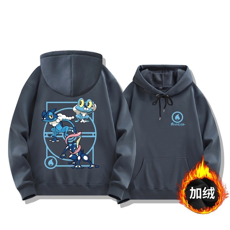 男の子用ポケモンアニメ忍者フード付きスウェットシャツ秋のトレンディなブランドのゆったりとしたオフショルダーの長袖服とジャケット