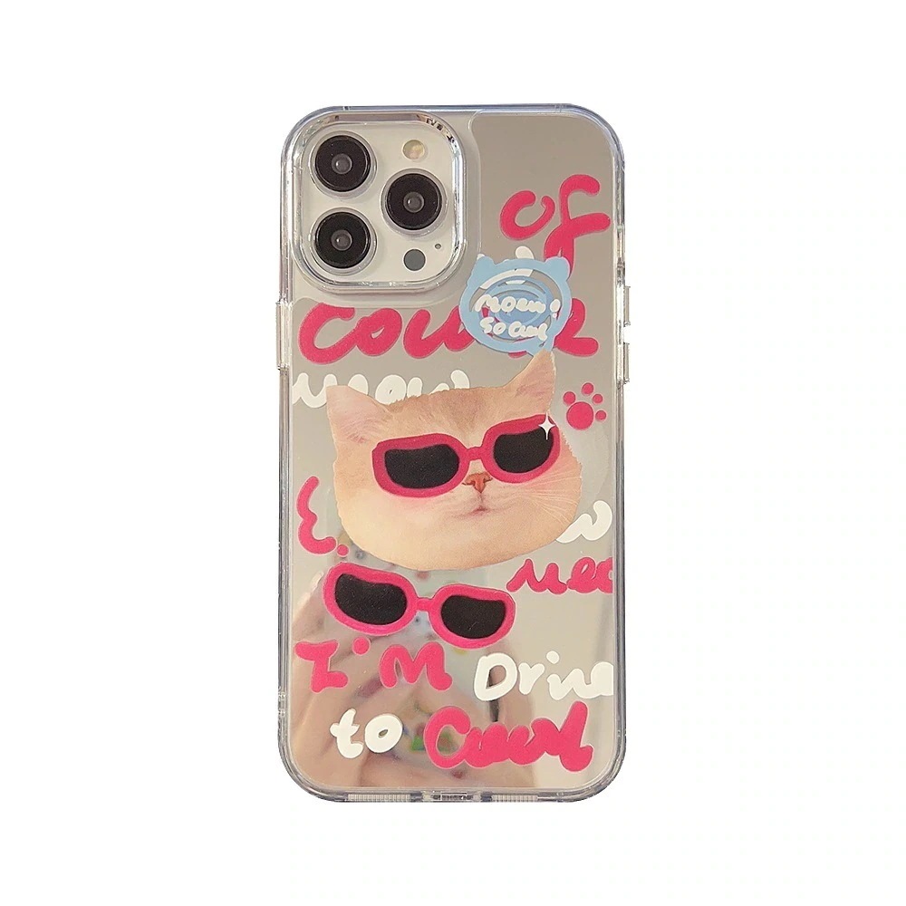 2024 新 iphoneケース アップル13携帯ケースギャルかわいいサングラス猫iphone 14 promaxめっきミラー15対応