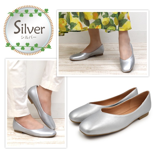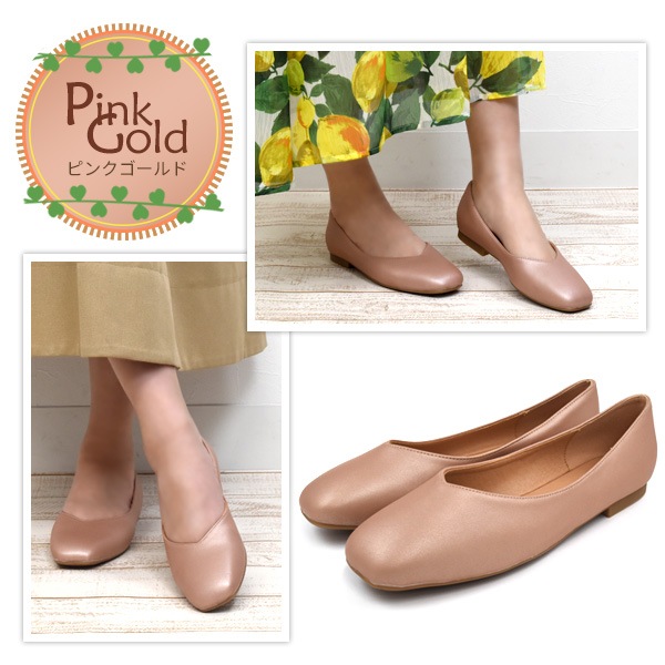 Vカット スクエアトゥ バレエシューズ やわらかアッパー ワイズ3E 22.5cm-24.5cm 足幅ゆったり ストレスフリー フラットシューズ パンプス オフィス 靴