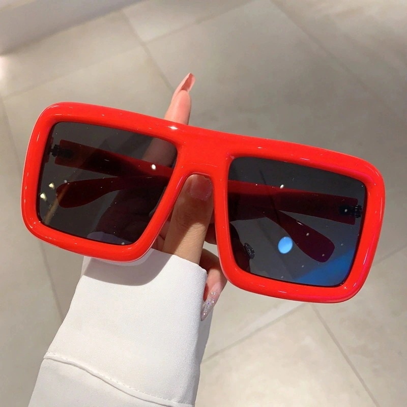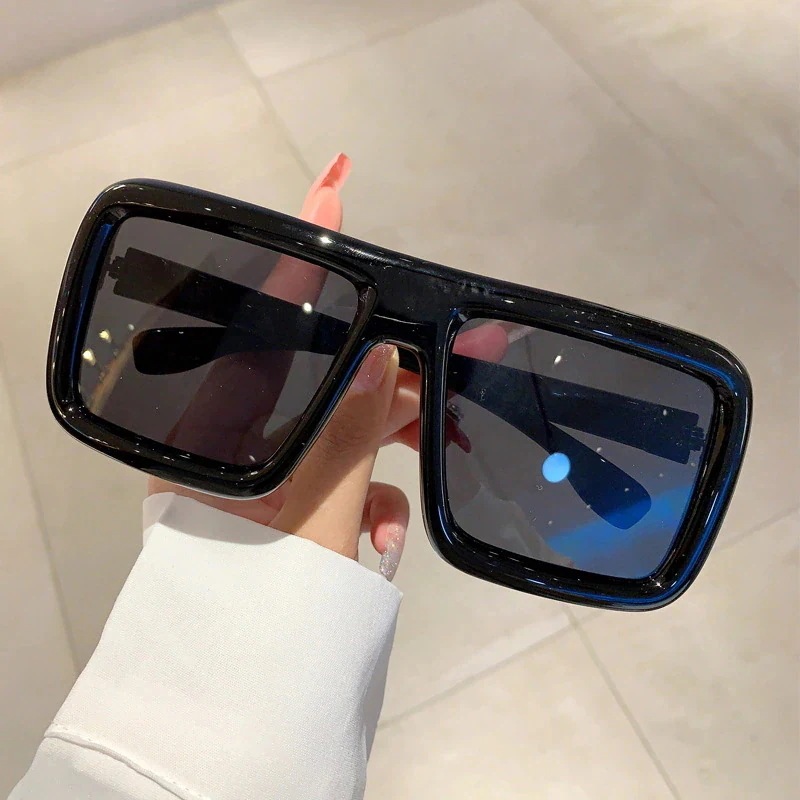 新しいシンプルなファッションスクエア大型フレーム紫外線防止サングラス丸顔薄型特大フレームレトロサングラス