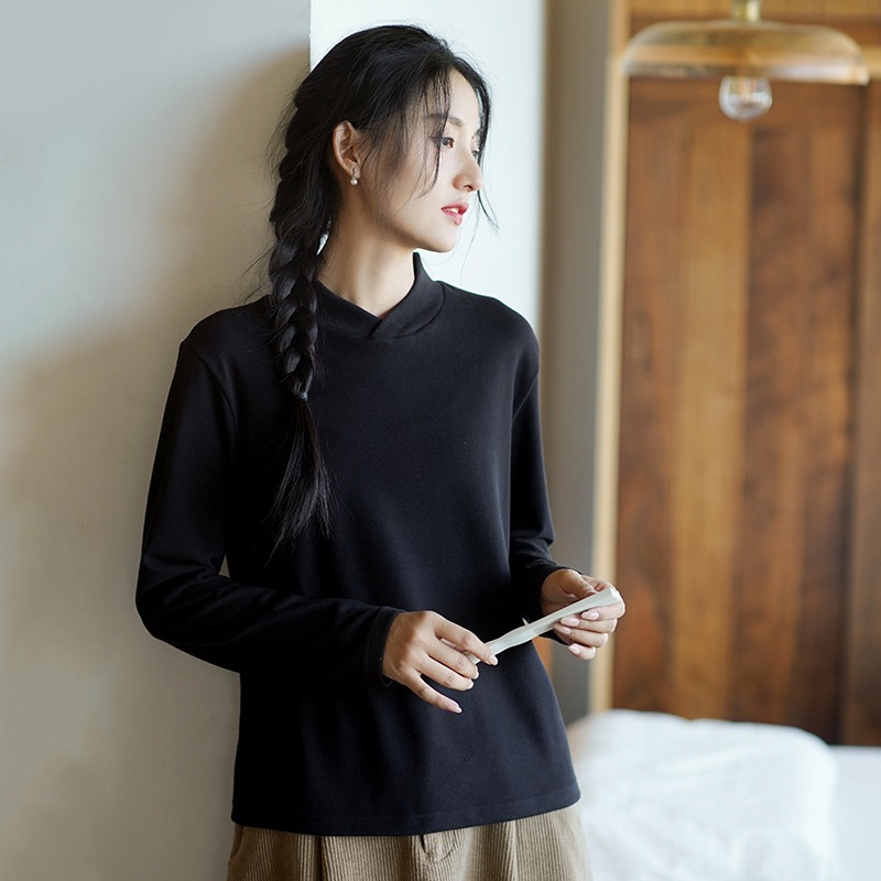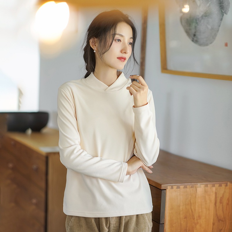 秋冬新作レディーススタンドネックレディースアウター暖かい長袖tシャツワイドジャケット スタンドカラーのカーディガンの外には保温長袖のTシャツのコーデュロイの上着を着る保温長袖上着下着 立襟長袖トップス