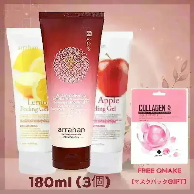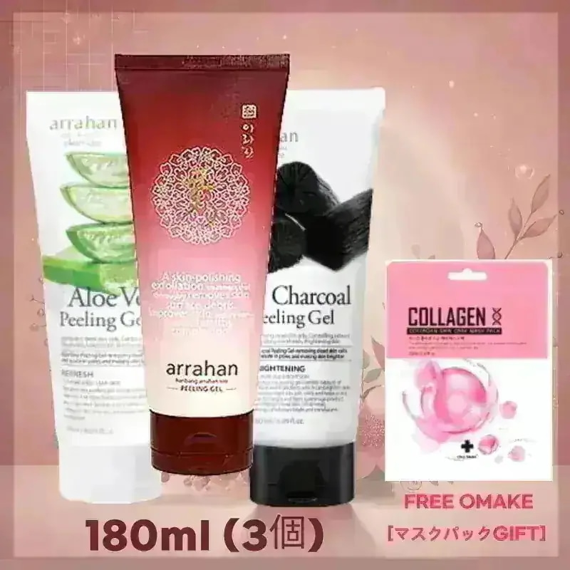 前回4本セットを購入し、安いのにちゃんとピーリング効果もあって良かったので、今回は3本セットのリピ!前回も韓国のインスタントコーヒーやお菓子がついていましたが、今回はホテルのアメニティみたいなレディースセットとパックも付いてました!またなくなったら買いたいと思います!