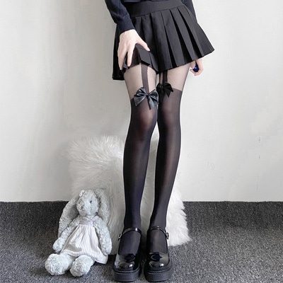 jk黒偽太ももパンスト秋白バンド蝶ネクタイ偽ストッキング