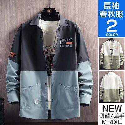 シャツ メンズ トップス 長袖 切り替え カジュアルシャツ ビジネス 開襟 メンズシャツ おしゃれ 春 春服 秋 秋服