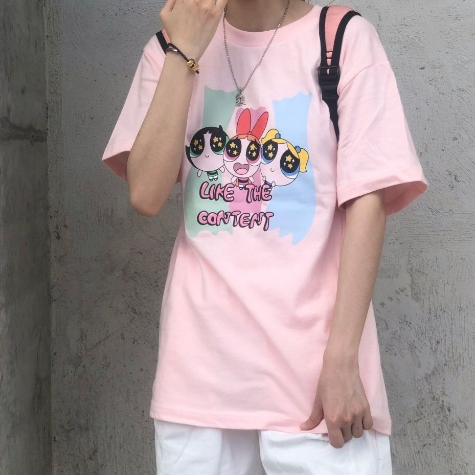 パワーパフ ガール鮮やかなピンク T シャツ女性漫画ヴィンテージかわいい子供のような半袖トップ