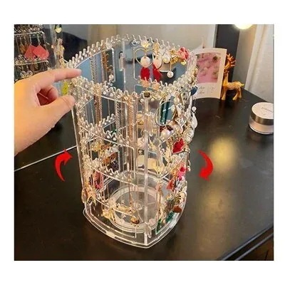 イヤリング ピアス スタンドネックレス収納 アクセサリースタンド [クリア] [収納 回転式360度
