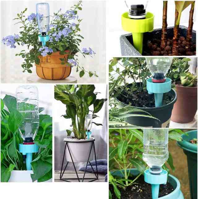 自動給水キャップ 6個セット ランダムカラー 6PCS 水やり 水やり当番 自動水やり器 自動給水器 植物 じょうろ 散水 水遣り器 挿すだけ 水量調節可能