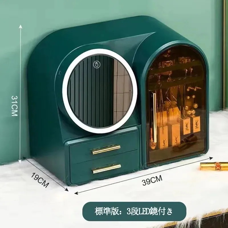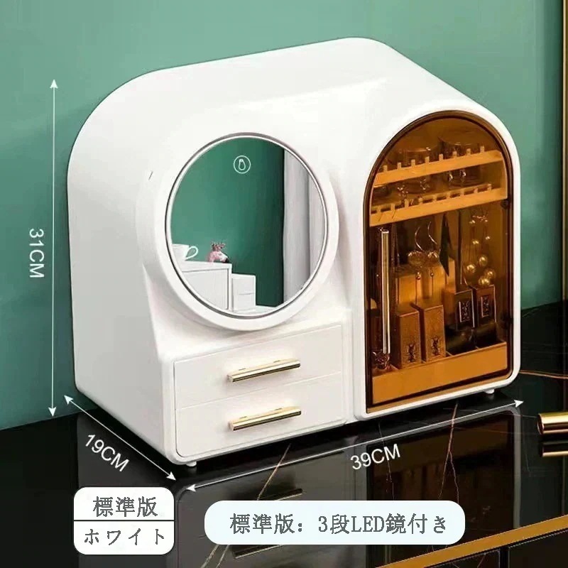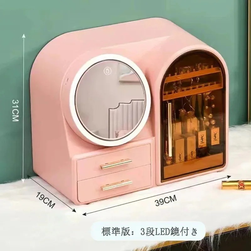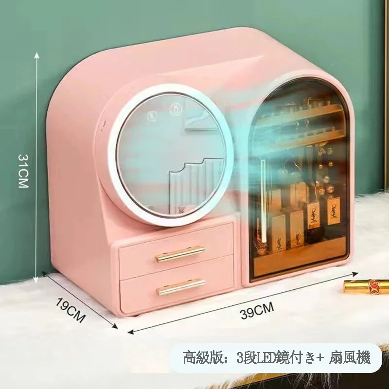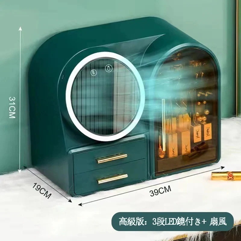 メイクボックス 大容量 コスメボックス 透明コスメボックス 3段LEDミラー扇風機付き コスメ収納 化粧品 収納 収納ボックス