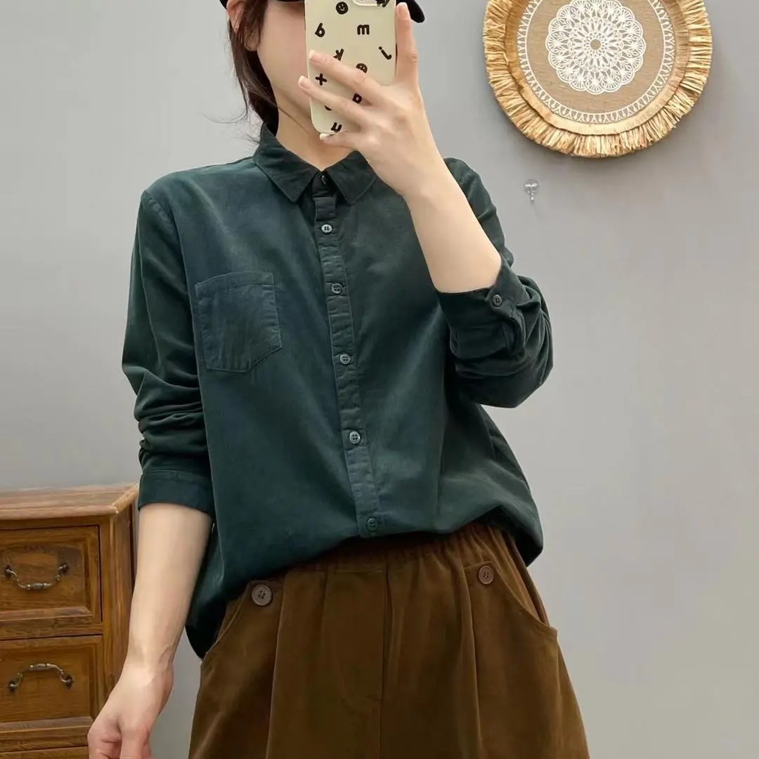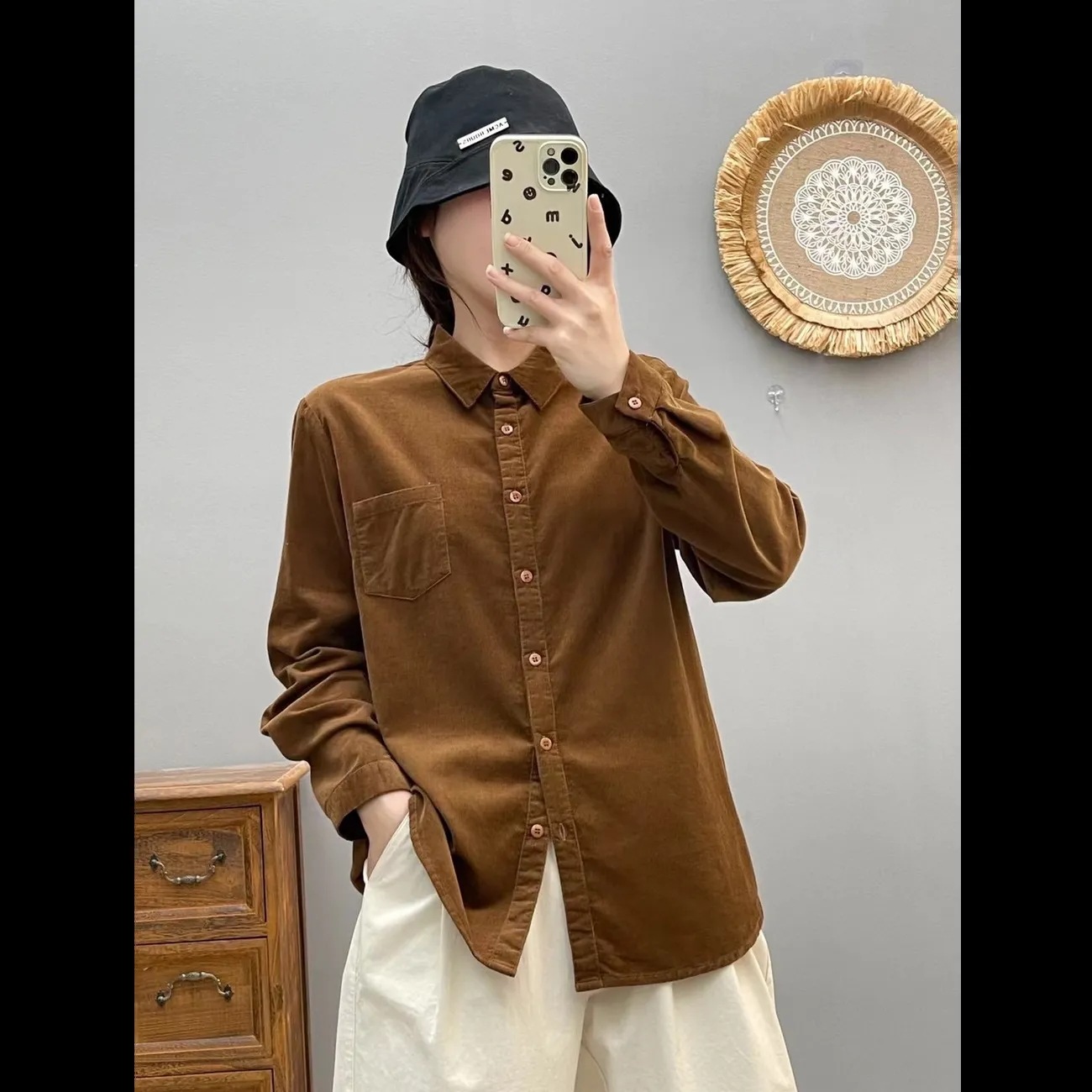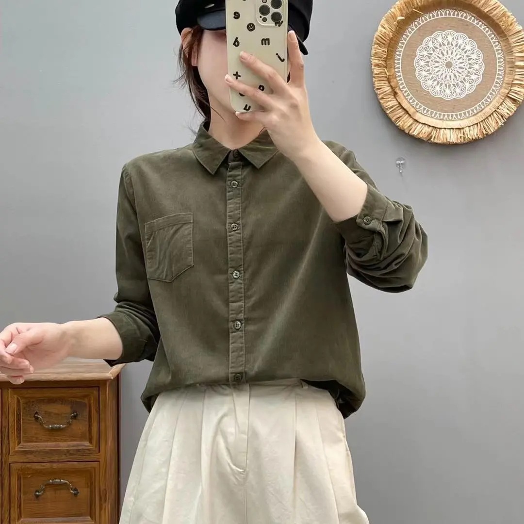 シャツ トップス レディース 長袖シャツ 春夏 体型カバー 白シャツ 無地 薄手 着痩せ チュニック リネン風 シャツ コーデュロイシャツ トップス ブラウス シンプル