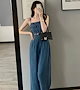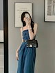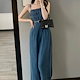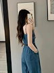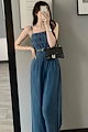 オールインワンデニムパンツレディース青ブルー無地キャミサロペットベルト付きウエストマーク脚長かわいいセクシー上品カッコイイカジュアルラフシャーリングきれいめかわいい大人可愛いかっこいいおしゃれこなれ感