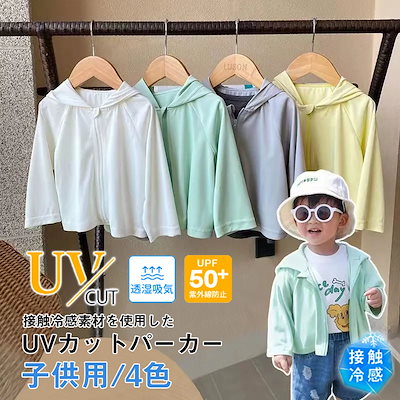 UVカット パーカー 女の子 男の子 キッズ ラッシュガード接触冷感 子供 ひんやり ジップアップ 日焼け止め 熱中症対策 暑さ対策 軽量 日焼け止め服 フード付き UPF50+ uvパーカー