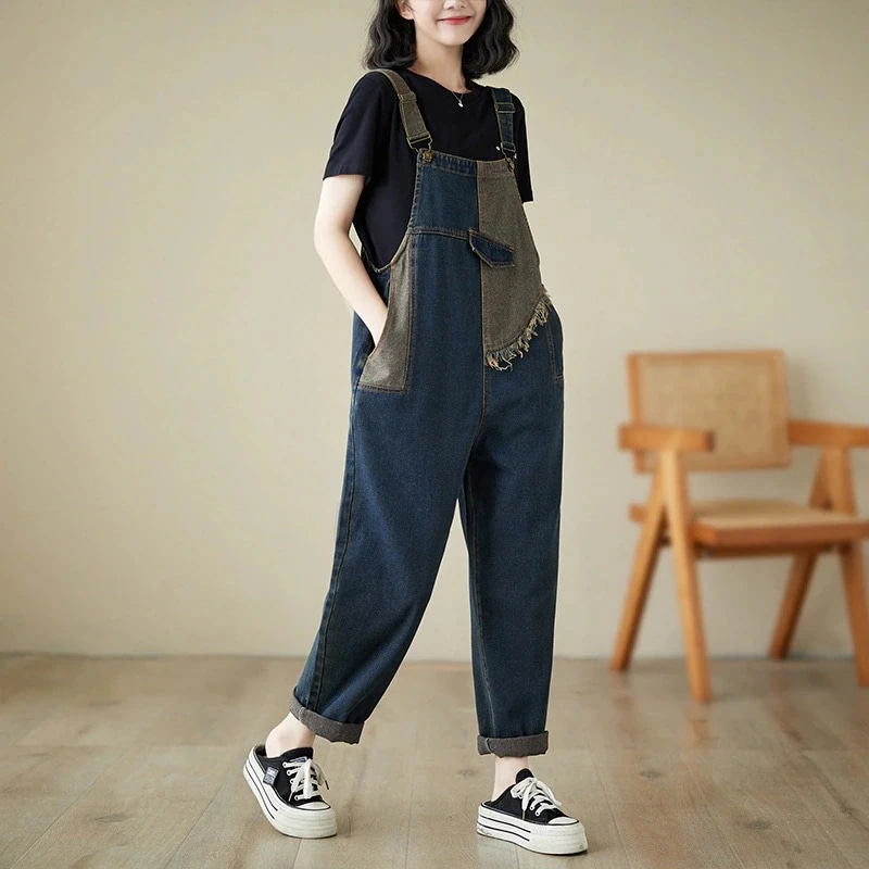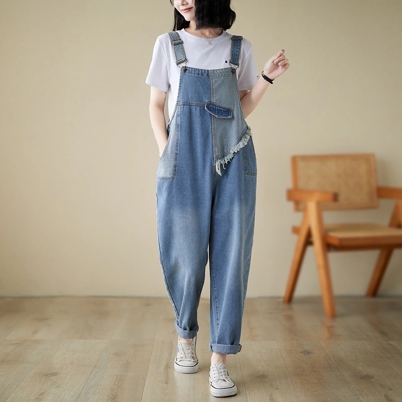ニムサロペット レディース 春秋 大きめ ゆったり ワイドパンツ 着痩せ オールインワンパンツ 2025福袋
