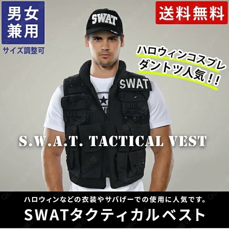 SWAT タクティカルべスト スワット コスプレ サバゲーからコスプレまで SWATタグ大小1個ずつ付属 メンズ レディース 兼用 ハロウィンコスプレ-56