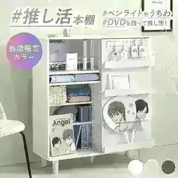 本やCD、高さがある雑誌、ペンラ、ぬいなど何でも入れてます。買ってよかった!マイナス1なのは、配達時、受け取るのがマジ大変だったから😭😭 -