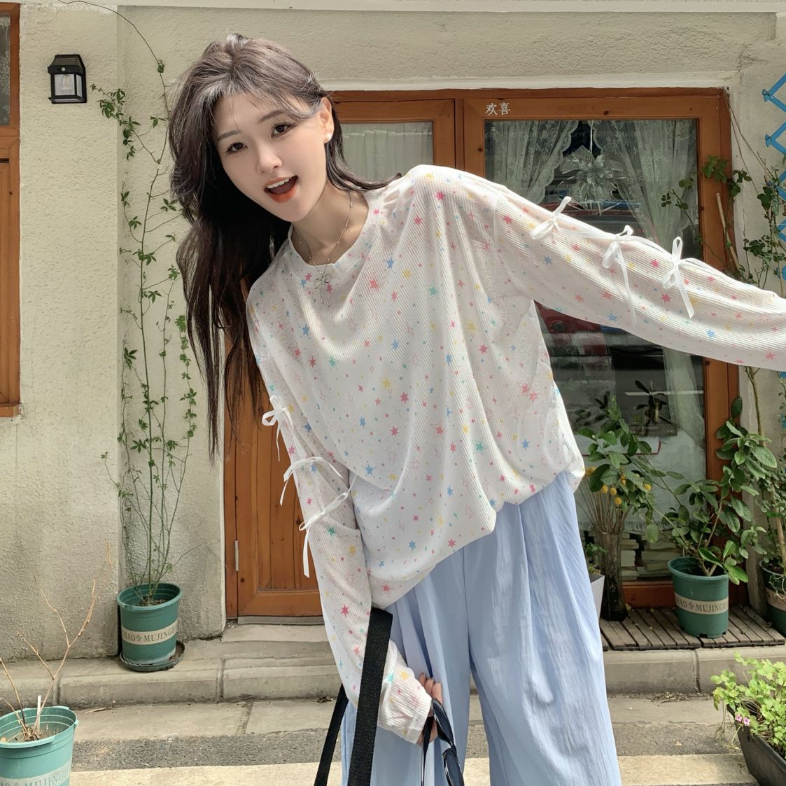 2026新入荷カーディガン シースルートップス 蝶ネクタイカラフルな星長袖Tシャツ OL 通勤 新しい夏薄いセクション日焼け止めスモックトップス