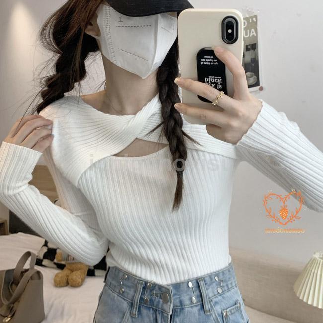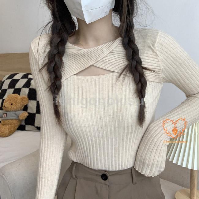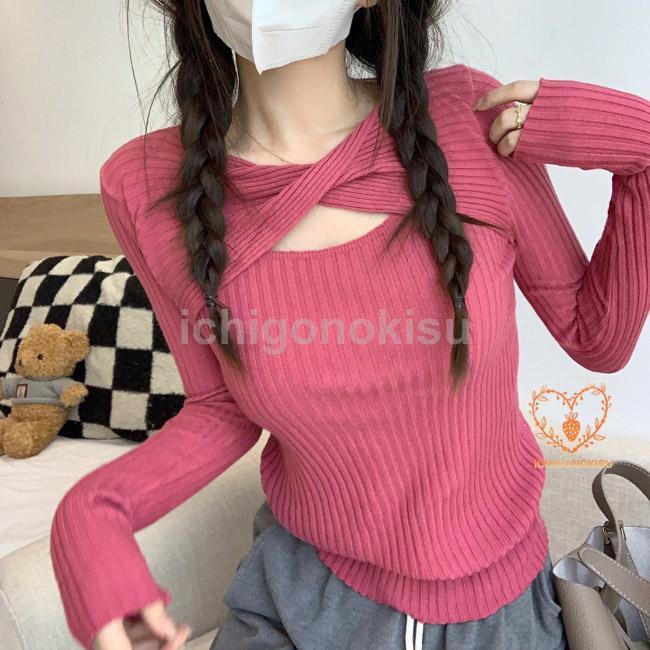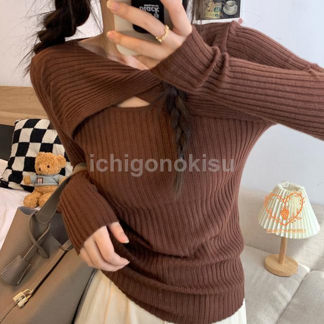 ニットセーター レディース インナー 胸開き Vネック リブ 重ね着 伸縮性 フィット感 柔らかい 暖かい 着痩せ シンプル 秋冬
