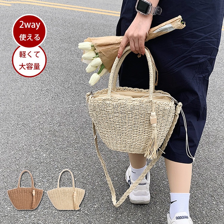 2way おしゃれ レディース 軽い ショルダーバッグ ショルダー 旅行 カゴバッグ サマーバッグ 浴衣バッグ 2024 ストローバッグ かごバッグ 斜めがけ 女性