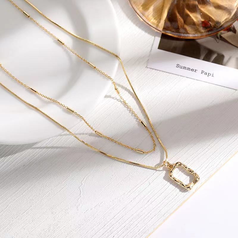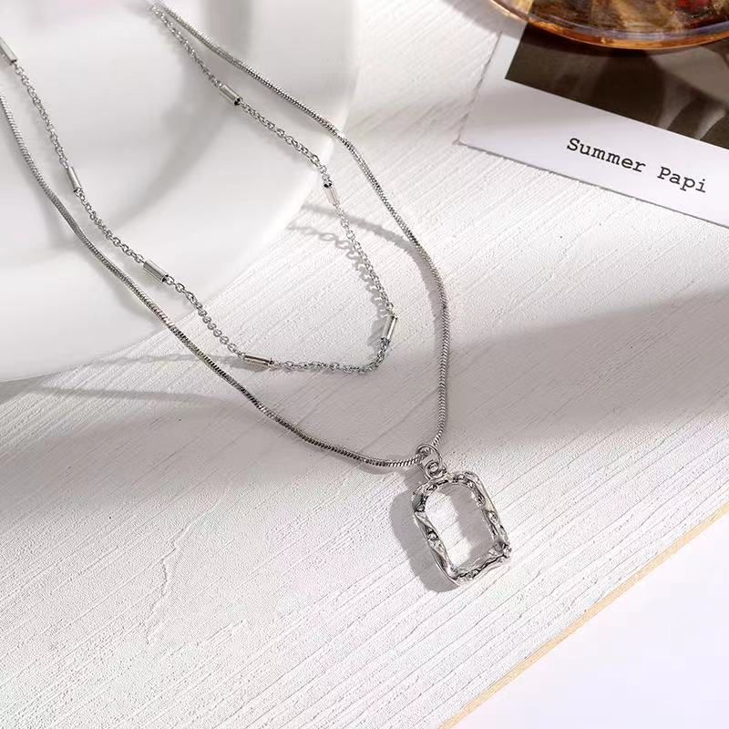 美しい首元 ネックレス スクエア中空二層ネックレス冷たい風ミニマリスト新しい積み重ね鎖骨チェーン ネックレス美しい首元 ネックレス
