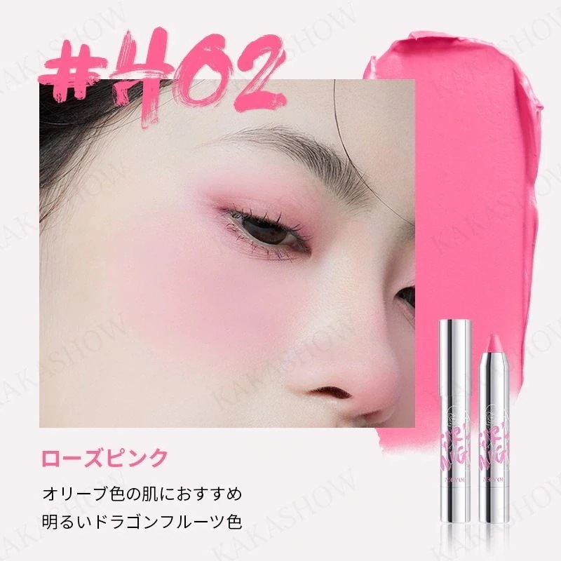 ペンシルタイプで使いやすいチークペンシルです。顔の色んなところに使えるので目の上目の下、ほっぺた鼻先、あごにちゃちゃっと色をのせてぼかすと簡単に血色メイクができます。色もとてもナチュラルで気に入ってます。他の色もほしい。濃いめのプラムっぽいカラーがあればいいなあ。ただ、スルスルとひけて書きやすいけど指でササッとのばしにくくて私はパフが必要だったので☆4で。