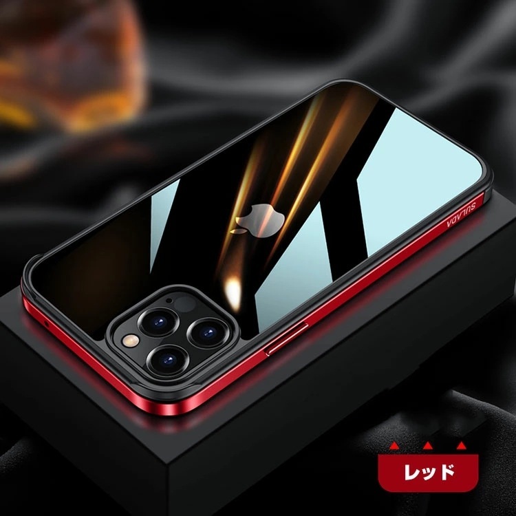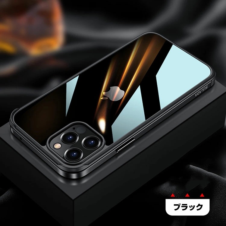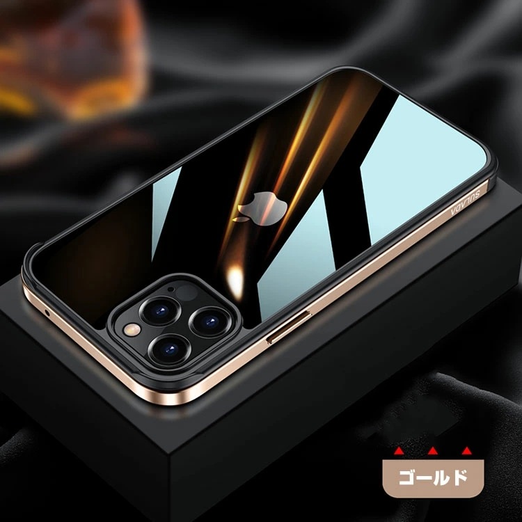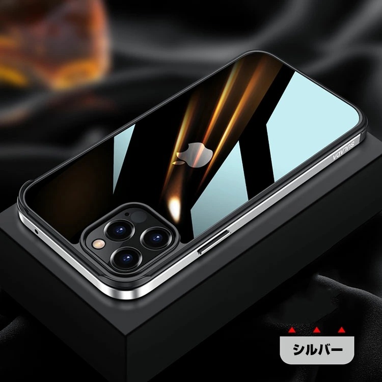 iPhone14 クリアケース アルミニウムバンパー iPhone13 13ro 12 背面パネル付き 持ちやすい 耐衝撃 落下防止 金属 軽量 持ちやすい 高級感があふれ 人気 背面強化ガラス