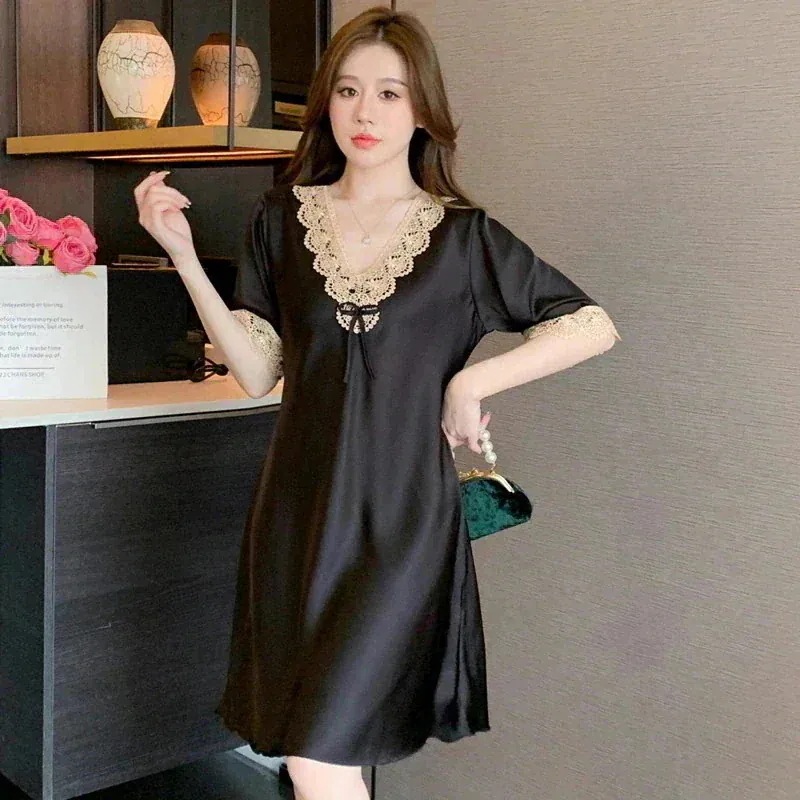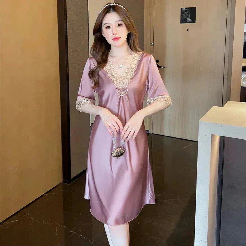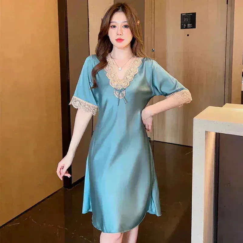 夏新作 サテンネグリジェ 高級感 ルームウェア 冷感 快適 パジャマ レディース半袖 ワンピース 部屋着 軽薄 セクシー アイスシルク パジャマ夏パジャマ