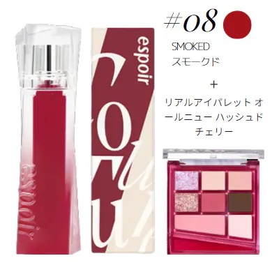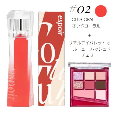 エスポア[チェリーSET] クチュールリップティントグレイズ 5.5g + リアルアイパレット オールニュー ハッシュドチェリー 4.8g