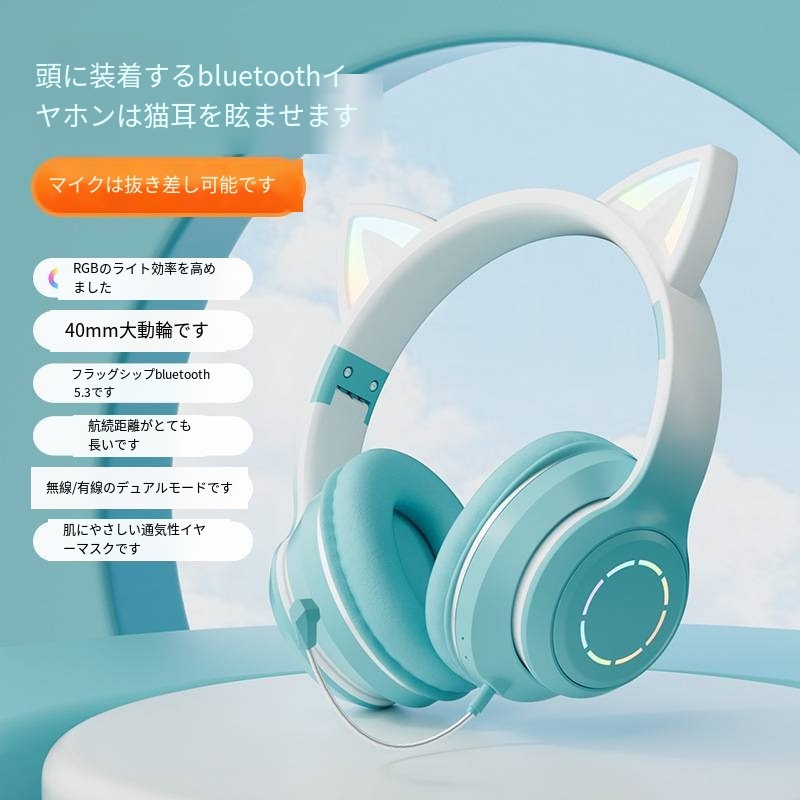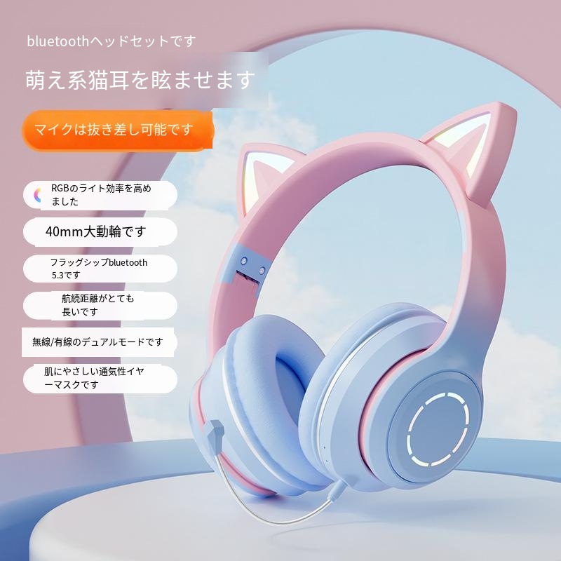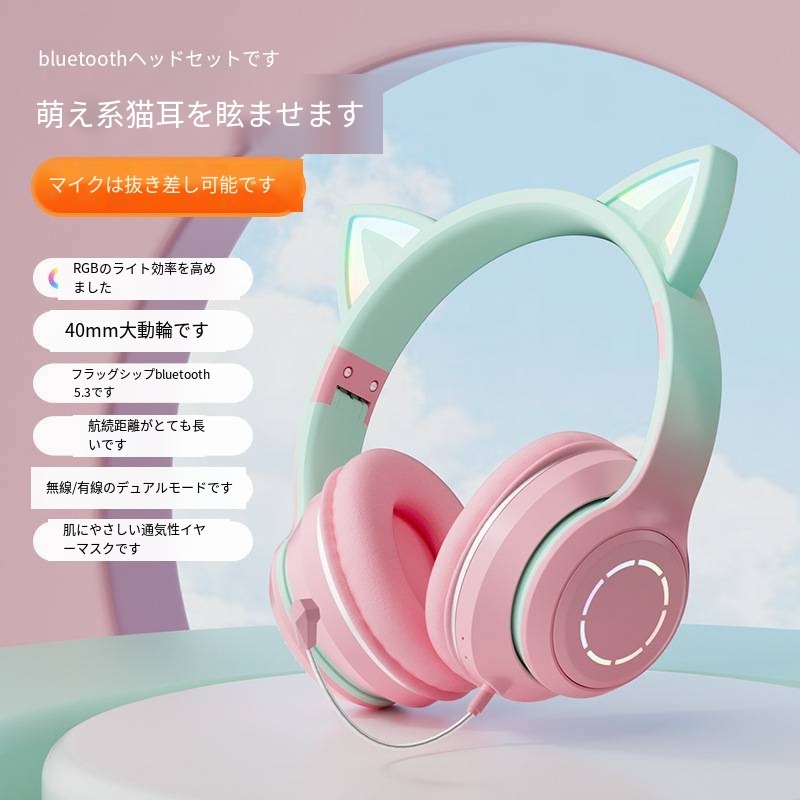 発光ブルートゥース イヤホン ヘッドマウントグ ラデーション かわいい 通話ゲームイヤホンマイクプレゼント