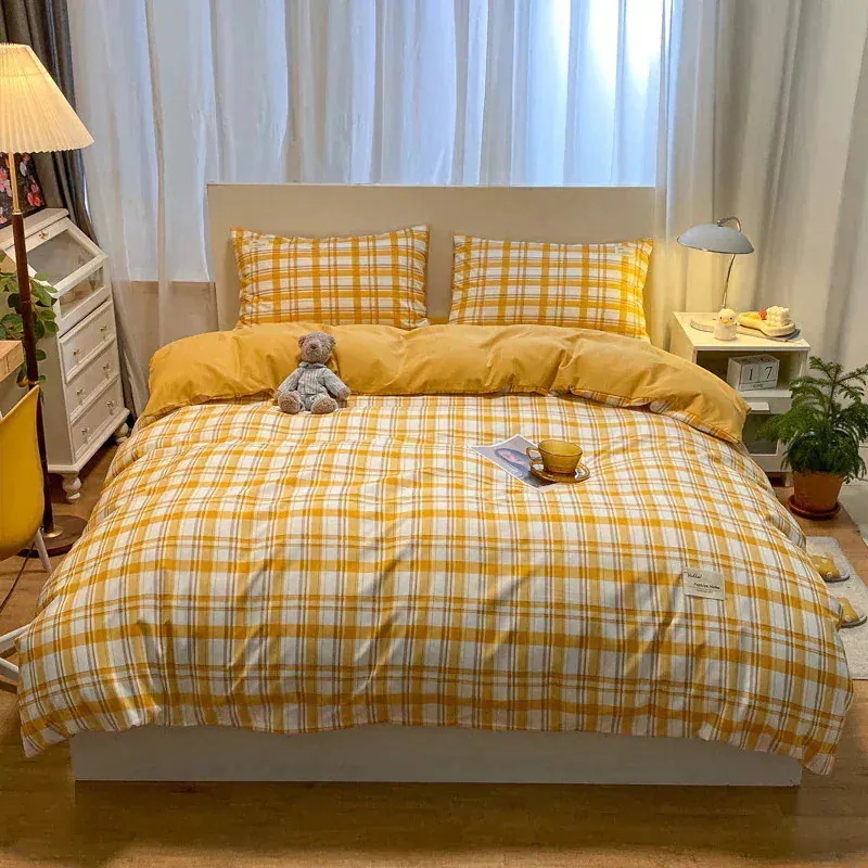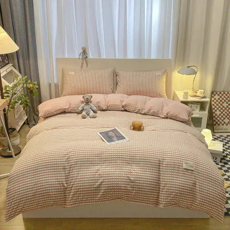 新作入荷 春夏シンプルなウォッシュドコットン4点セットベッドシーツキルトカバー寝具布団カバー 枕カバー寝具4点セット