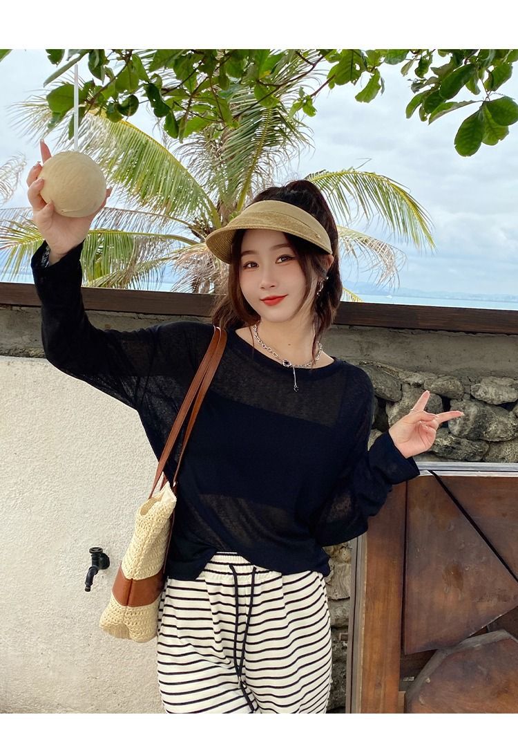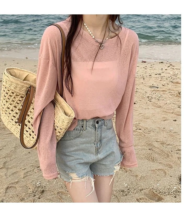 【2025大人気】2枚送料無料 シアートップス UVカット カッティングシート シアー シースルー トップス シアー カットソー レディース インナー レースブラウス 長袖 透け感 夏 涼しい